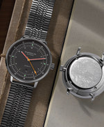 Ein zuverlässiger Automatik-Zeitmesser für Technikfans und Designliebhaber. Dreifarbiges Luminova und größere Zahlen sorgen für optimale Lesbarkeit. Auf der Rückseite findest Du eine Gravur der Stadtkarte unserer Heimatstadt: Ein Stück Hamburg für Dein Handgelenk.