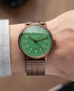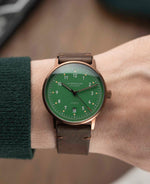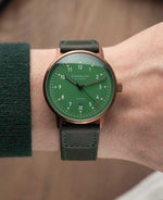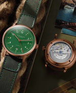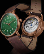 Lichtblick und Blickfang am Handgelenk. Die erste STERNGLAS mit zwei verschiedenen Luminova-Farben und einem Automatikwerk mit bis zu 60 Stunden Gangreserve – in einem edlen Gehäuse in bronze. Entdecke feine Details wie gebläute Schrauben oder das innovative Nylonband.