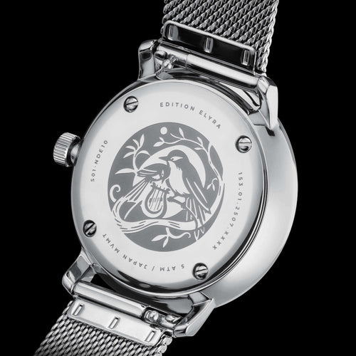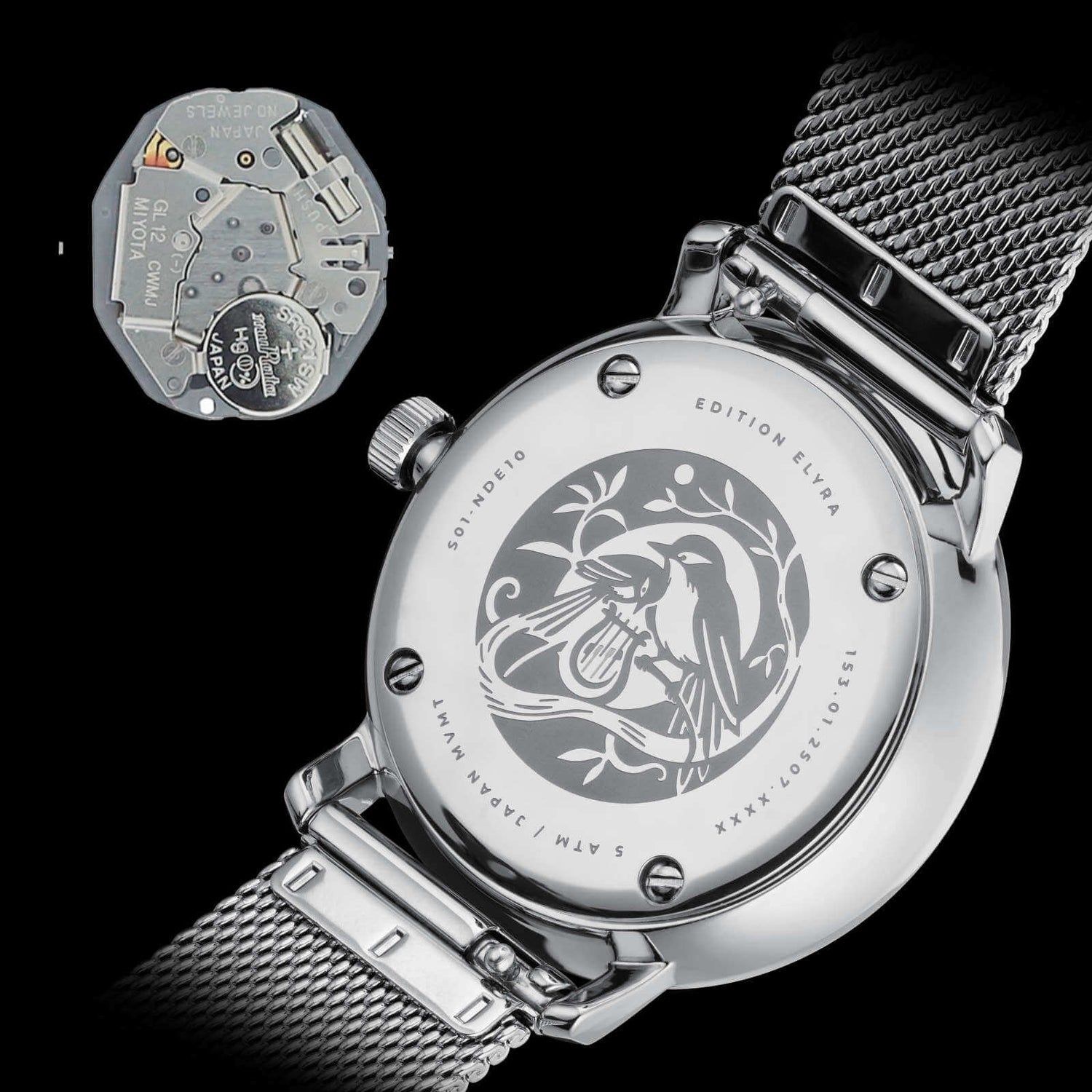 Zeitlose Eleganz in silber. Die Naos XS Edition Elyra vereint feines Design, edle Materialien und symbolische Details zu einem femininen Klassiker.